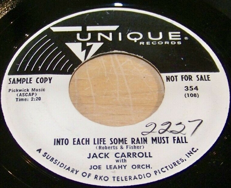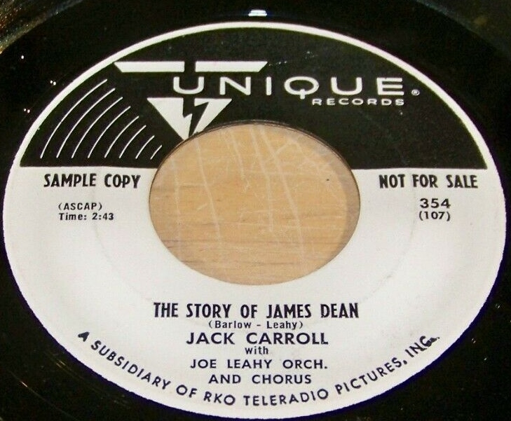 09 56....354....JACK CARROLL with JOE LEAHY ORCH. AND CHORUS..The Story Of James Dean (107)/JACK CARROLL with JOE LEAHY ORCH. ..Into Each Life Some Rain Must Fall (108)
