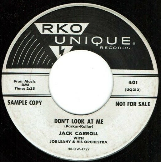 05 57....401....JACK CARROLL WITH JOE LEAHY & HIS ORCHESTRA..Ridin' Into Tulsa (UQ211 H8-OW-4728)/Don't Look At Me (UQ212 H8-OW-4729)
