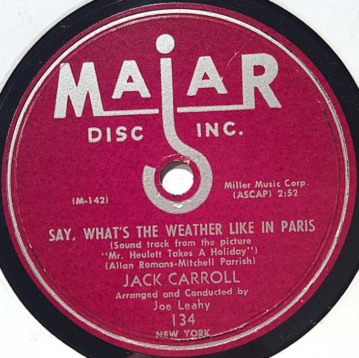 11 54....134-X45....JACK CARROLL Arranged and Cond. by Joe Leahy..Say, What's The Weather Like In Paris (M-142)/Which Way (M-143)