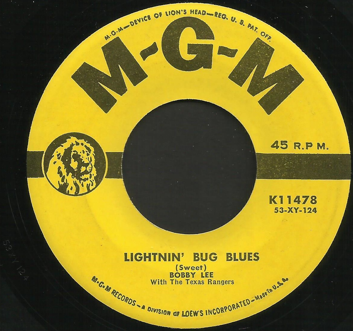 04 53....K11478....BOBBY LEE With The Texas Rangers..Always Sorry (---------)/Lightnin' Bug Blues (53-XY-124)