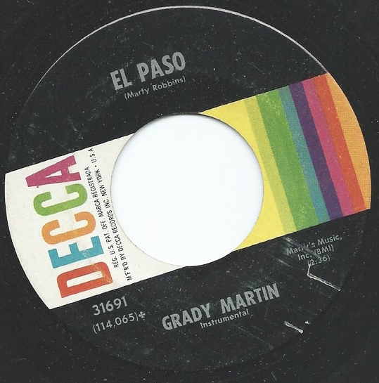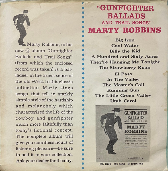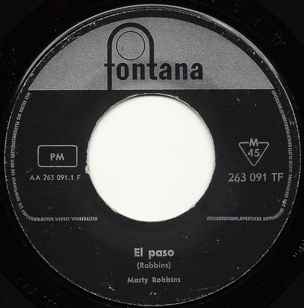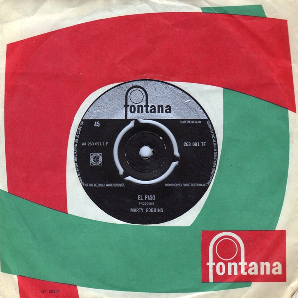 El Paso ist wohl Marty Robbins bekannteste Aufnahme. Hier als niederländische Pressung. Deutsch gecovert von Lolita und dem Western-Trio. Eine weitere Coverversion gibt es von Harry Graf (damit kann ich aber leider nicht dienen).