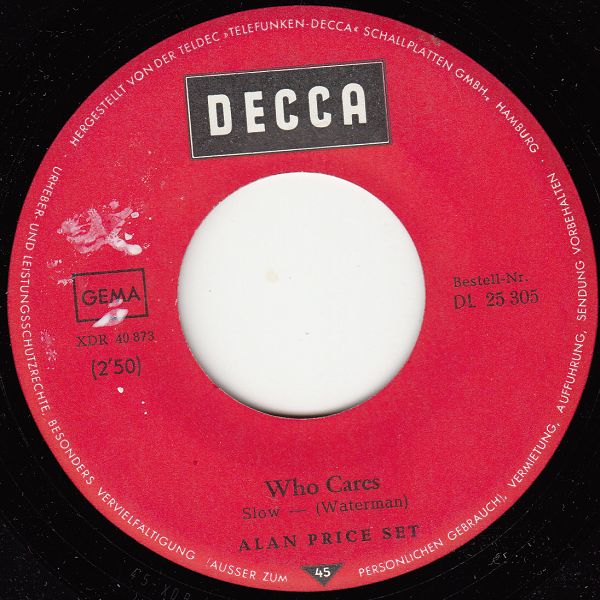 09 67....DL 25 305....ALAN PRICE SET..The House That Jack Built (XDR 40 872)/Who Cares (XDR 40 873) (GB: 12641)