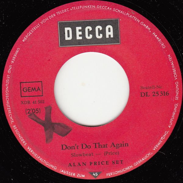 12 67....DL 25 316....ALAN PRICE SET..Shame (XDR 41 500)/Don’t Do That Again (XDR 41 501) (GB: 12691)