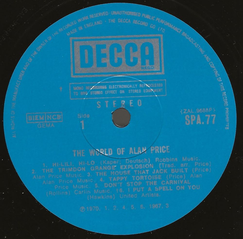 05 66....DL 25 237....ALAN PRICE SET..Iechyd-Da (XDR 37 712)/I Put A Spell On You (XDR 37 664) (GB: 12367)