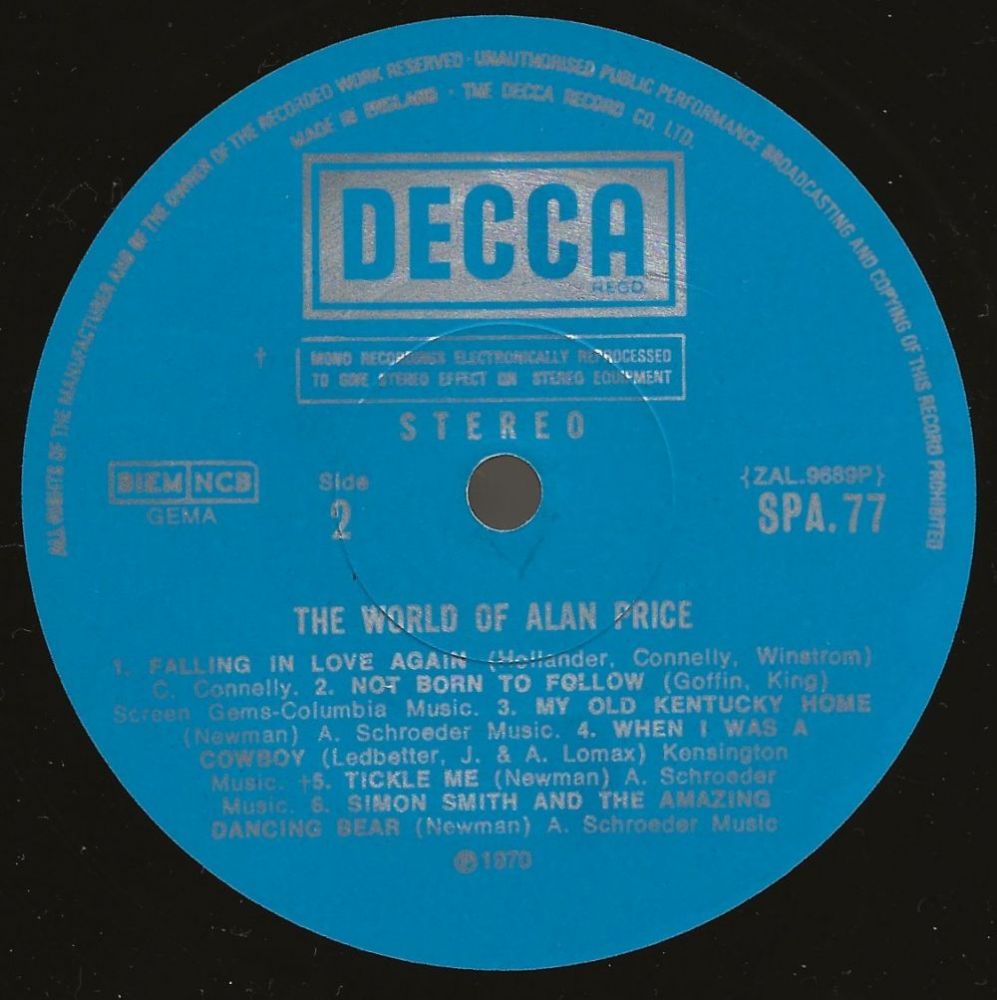 04 67....DL 25 286....ALAN PRICE SET..Simon Smith And His Amazing Dancing Bear (XDR 39 796)/Tickle Me (XDR 39 797) (GB: 12570)