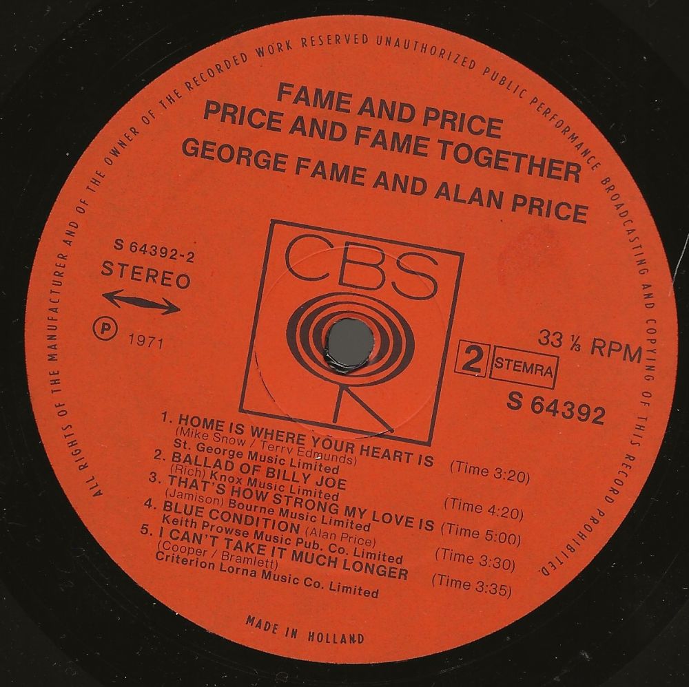 07 67....F.12641....ALAN PRICE SET..The House That Jack Built (XDR.40872)/Who Cares (XDR.40873)
