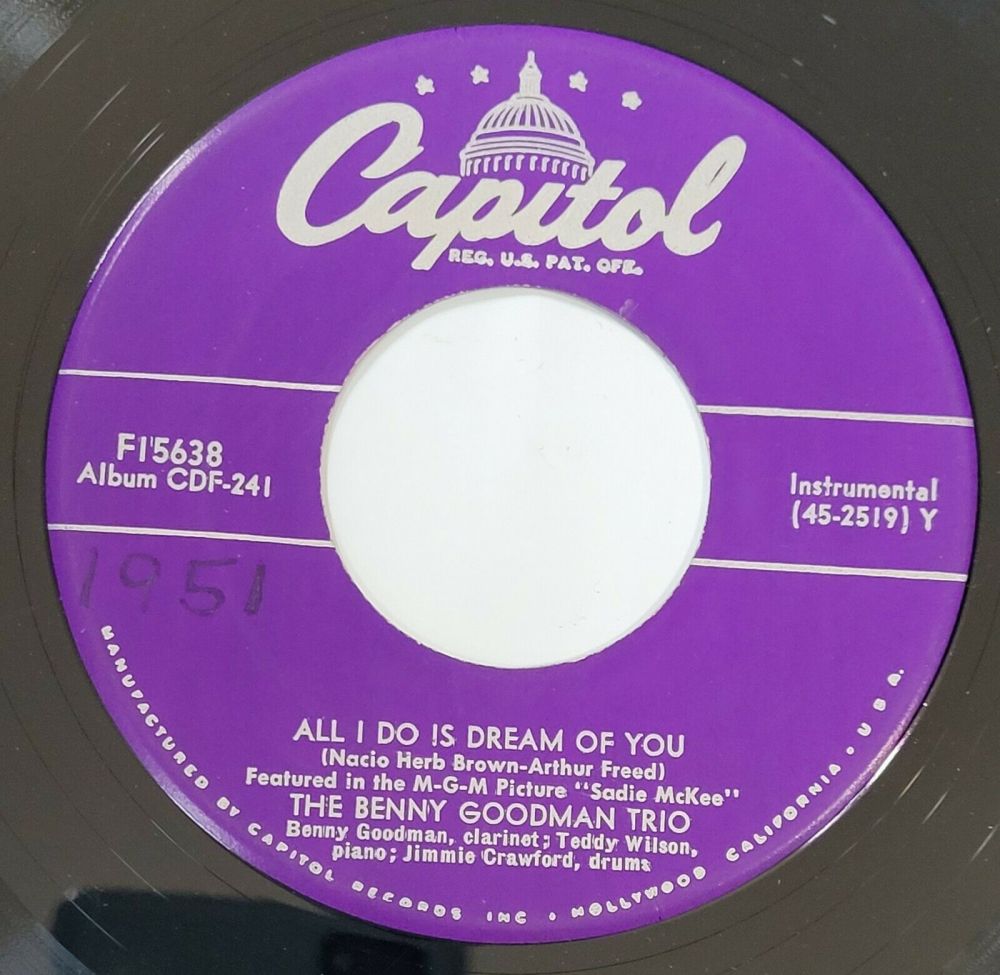 ?? 51....F15638....THE BENNY GOODMAN TRIO Benny Goodman, clarinet; Teddy Wilson, piano; Jimmie Crawford, drums.. All I Do Is Dream Of You (45-2519) Y/AL CASEY AND HIS SEXTET Willie Smith, alto; Illinois Jacquet, tenor; Gerald Wilson, trumpet; Al Casey, guitar; Horace Henderson, piano; John Simmons, Bass; Sid Catlett, drums..How High The Moon (45-559) Z