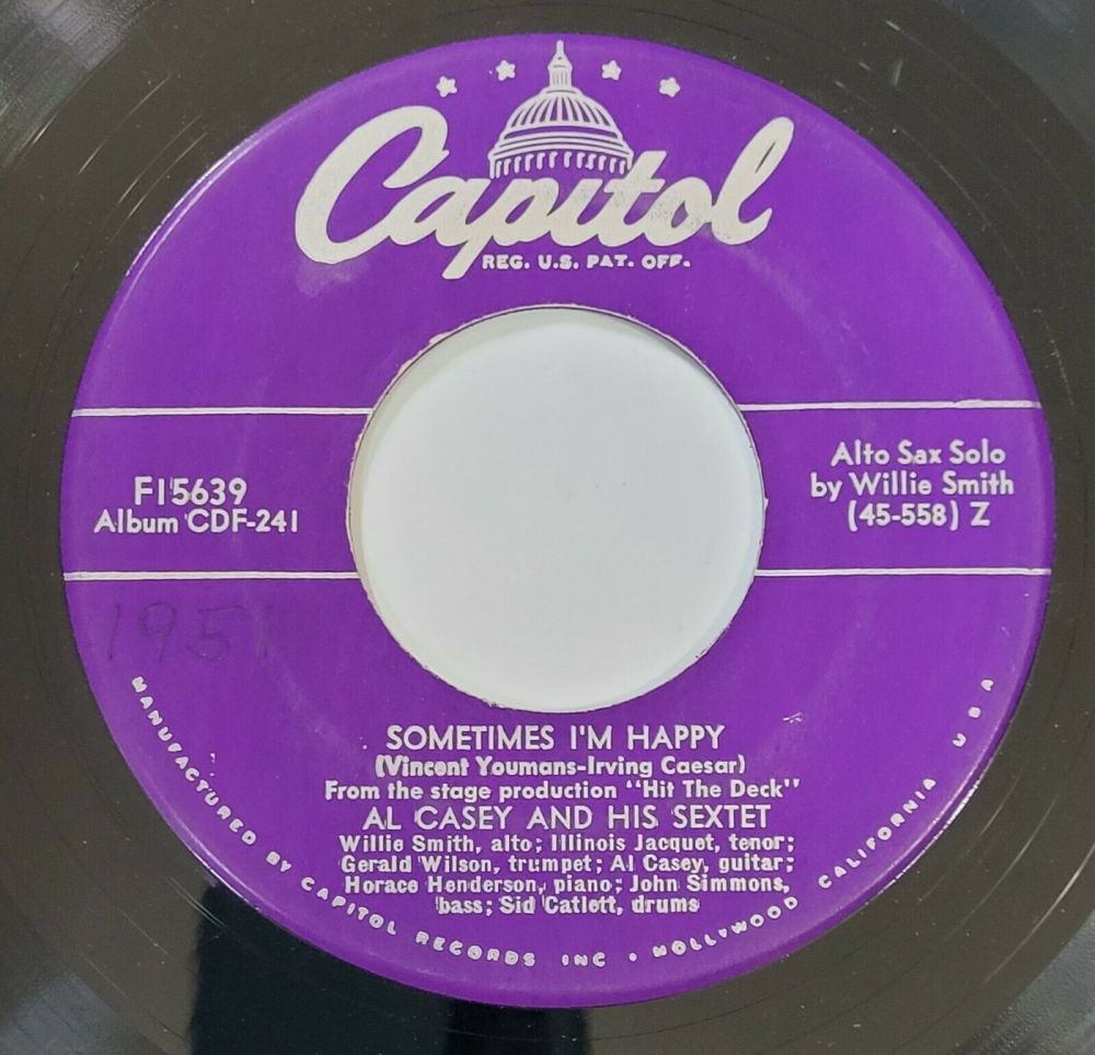 ?? 51....F15639....BENNY GOODMAN And His Orchestra..Sweet And Lovely (45-2371) Y/AL CASEY AND HIS SEXTET Willie Smith, alto; Illinois Jacquet, tenor; Gerald Wilson, trumpet; Al Casey, guitar; Horace Henderson, piano; John Simmons, Bass; Sid Catlett, drums..Sometimes I'm Happy (45-558) Z