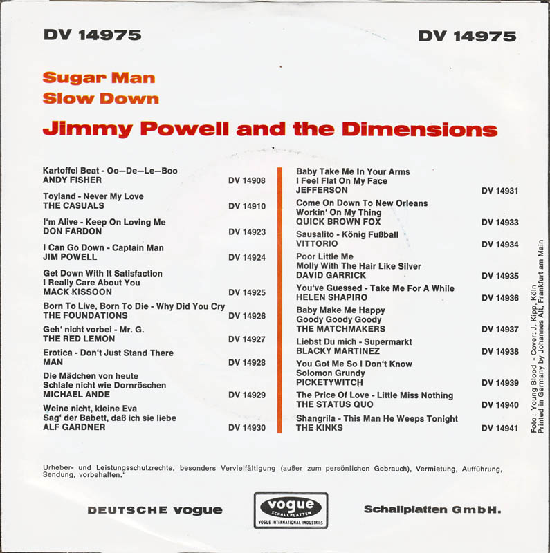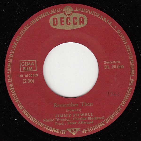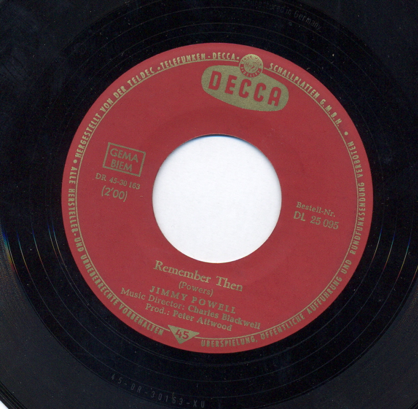 Deutsche Decca Single Nr. DL 25095 - Jimmy Powell mit Remember Then und der Rückseite-