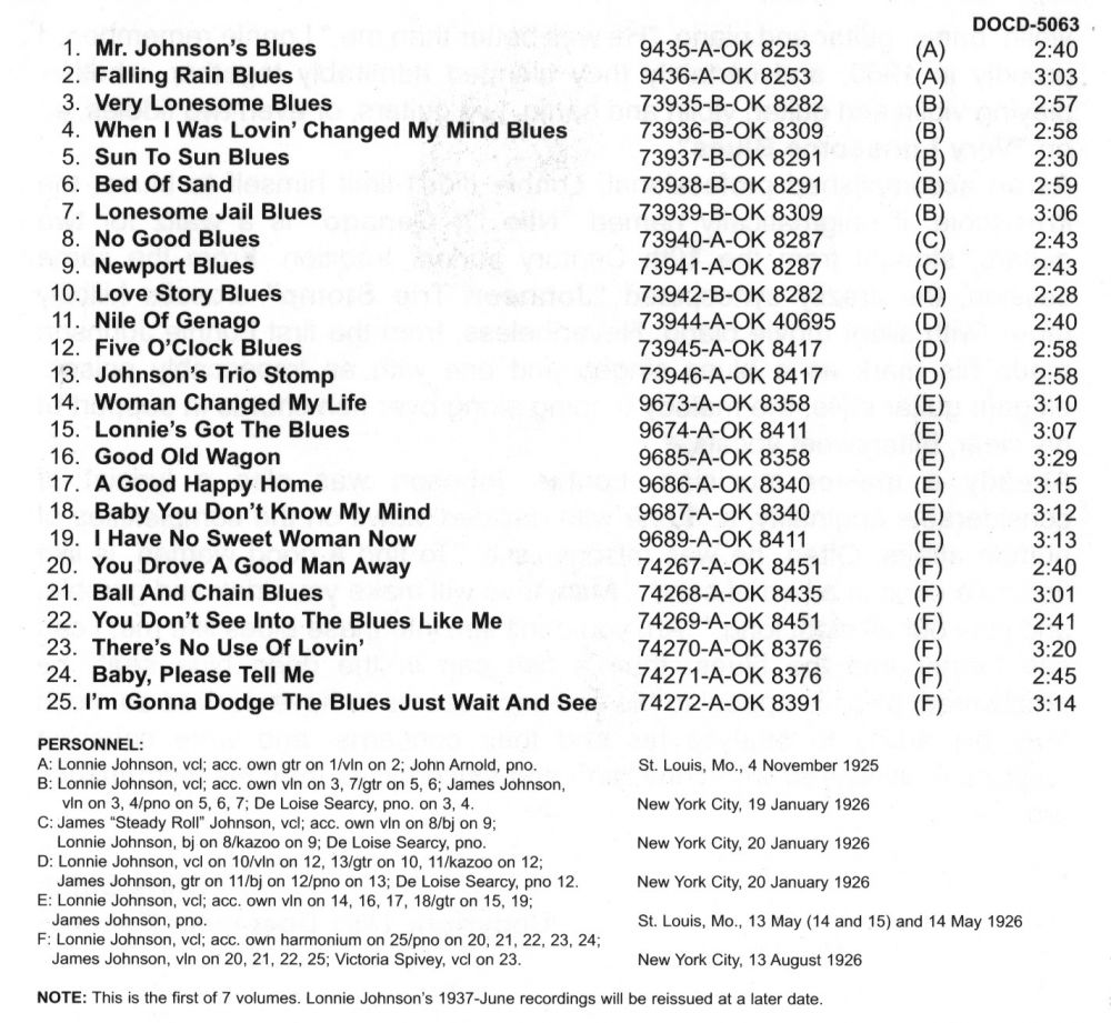 After touring with Bessie Smith in 1929, Johnson moved to Chicago and recorded for Okeh with the stride pianist James P. Johnson. However, with the temporary demise of the recording