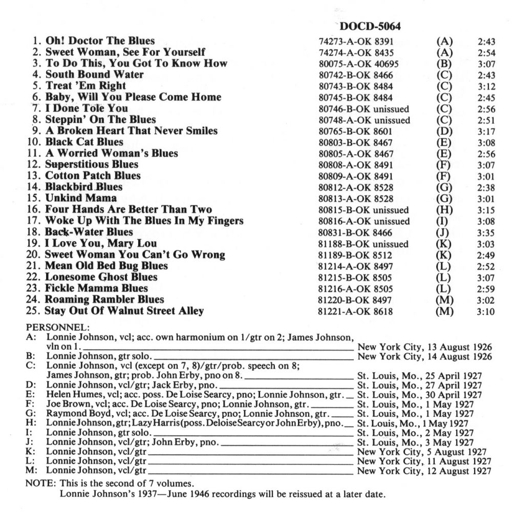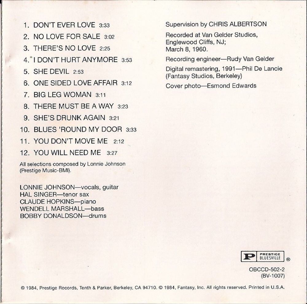Time seemed to have passed Johnson by during the late '50s. He was toiling as a hotel janitor in Philadelphia when banjo player Elmer Snowden alerted Chris Albertson to his whereabouts. That rekindled a major comeback, Johnson cutting a series of albums for Prestige's Bluesville subsidiary during the early '60s and venturing to Europe under the auspices of Horst Lippmann and Fritz Rau's American Folk Blues Festival banner in 1963. Finally, in 1969, Johnson was hit by a car in Toronto and died a year later from the effects of the accident.