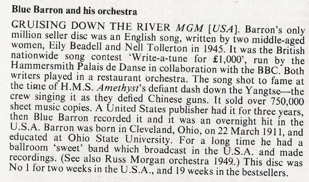 01 49....10346.... BLUE BARRON and his ORCHESTRA Vocal by The Ensemble..Cruising Down The River/-B..Powder Your Face With Sunshine (Smile! Smile! Smile!)