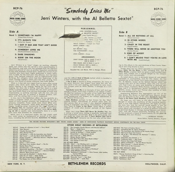 Mitte der 50er Jahre war JERRI WINTERS auf Fraternity-LP und Single
