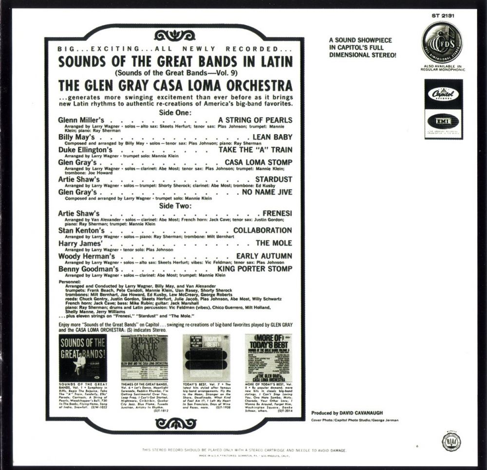 He was coaxed back into the studio to record some LPs for Capitol Records which recreated the sounds of the big band era in stereo. The reconstituted band made a limited number appearances live and on television and recorded fifteen LP albums for Capitol. Sadly his health was on the decline and his final LP, "Sounds of the Great Bands, Vol.7: Today's Best”, was released only two weeks before his death