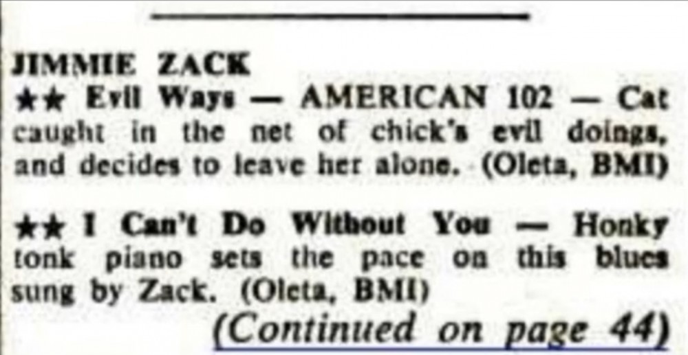 JIMMIE ZACK, der nicht mit Eddie Zack verwandt scheint, war 1960 und