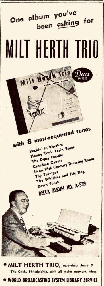 Milt Herth wusste, was er tun würde, als er Anfang der 30er Jahre in Chicago die erste Hammondorgel in der Lobby der Hammond Clock Company ausgestellt und vorgeführt sah. Die Orgelgeschichte könnte man aufgrund seines späteren Hingabegelöbnisses, das darin bestand, die Hammondorgel zu spielen und sie auf jede erdenkliche Weise zu dokumentieren, von der Veröffentlichung von Notenblättern für Orgelsolos bis hin zur Aufnahme von Dutzenden von Alben, praktisch als „herth-tory“ bezeichnen. Ein Bericht über das Princeton College-Treffen von 1938 liefert einen Ausschnitt aus dem Alltag dieses Künstlers: „Das Highlight der Veranstaltung war Milt Herth,