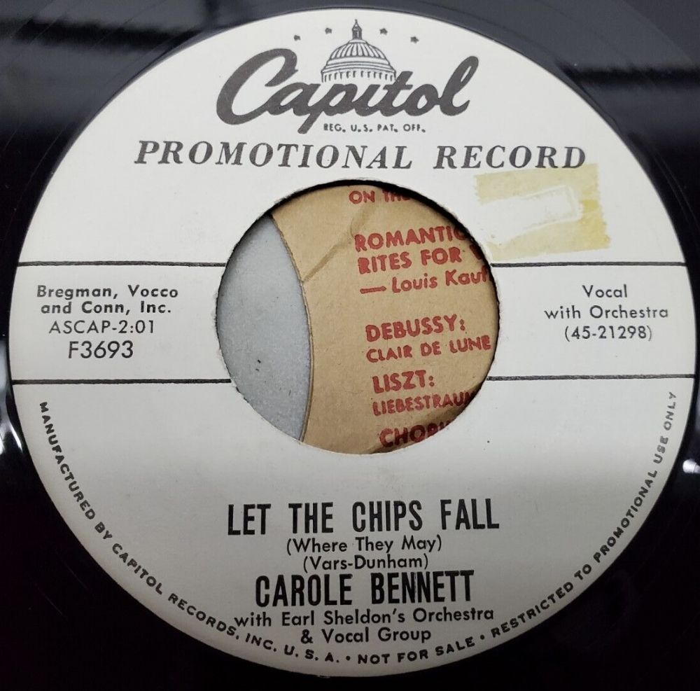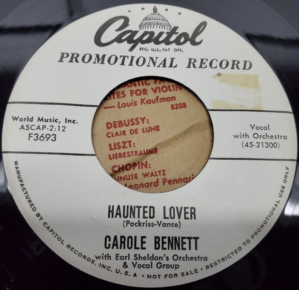 04 57....F3693....CAROLE BENNETT with Earl Sheldon’s Orchestra & Vocal Group..Haunted Lover (45-21300)/Let The Chips Fall (Where They May) (45-21298)