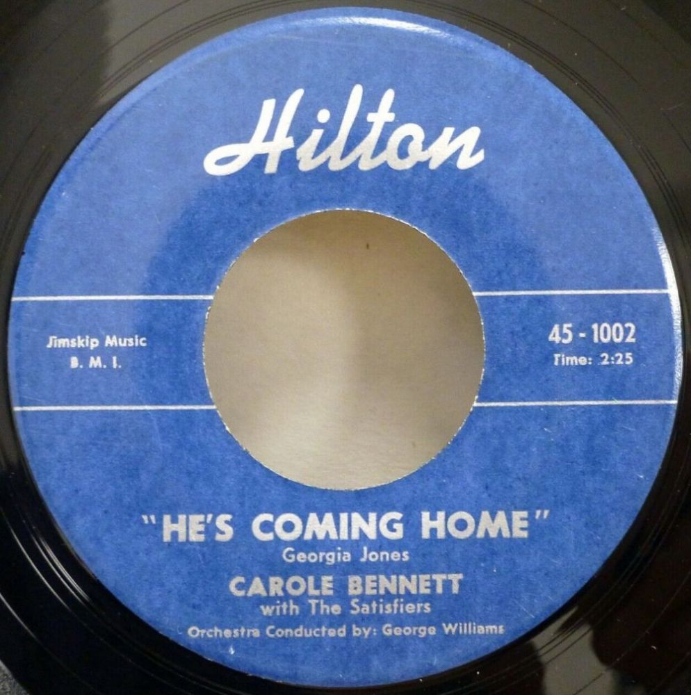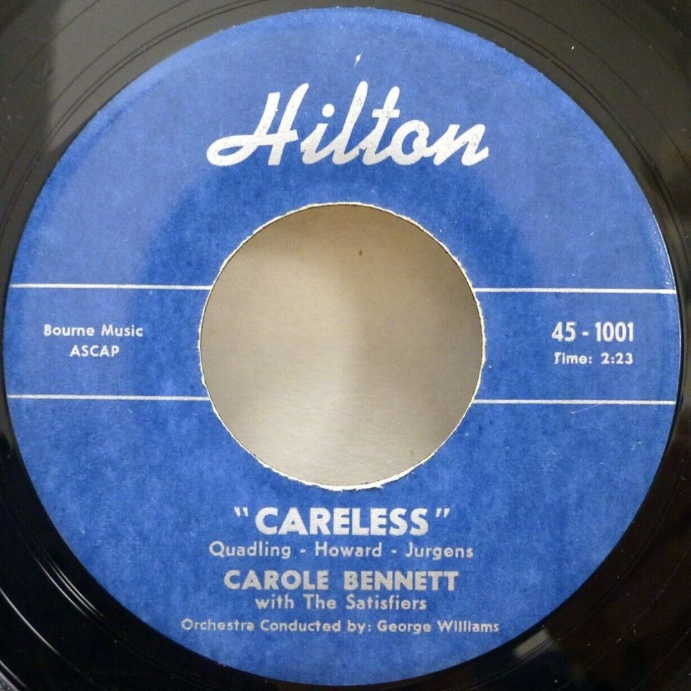 10 57....V-10095x45 A....CAROLE BENNETT with THE SATISFIERS Orchestra conducted by GEORGE WILLIAMS..Careless (21,398) H8-OW-8279)/ B….He's Coming Home (21,399) H8-OW-8280) (HILTON 1001/1002)