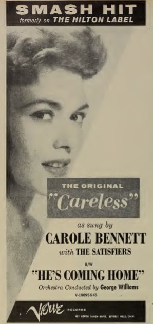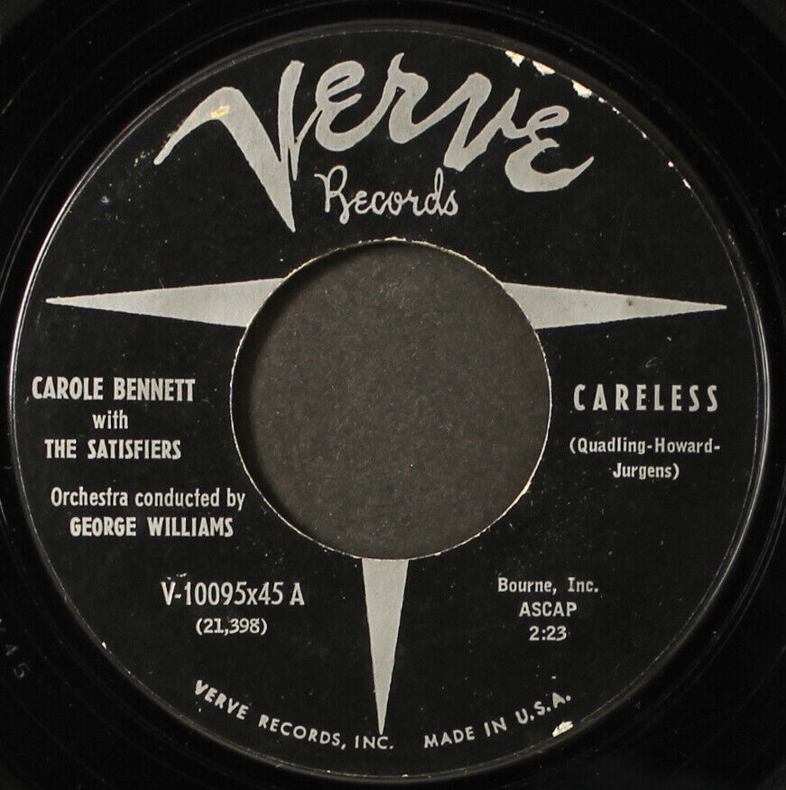 08 57….45 - 1001….CAROLE BENNETT with The Satisfiers Orchestra Conducted by George Williams..Careless/45 - 1002….He's Coming Home (dann VERVE 10095)