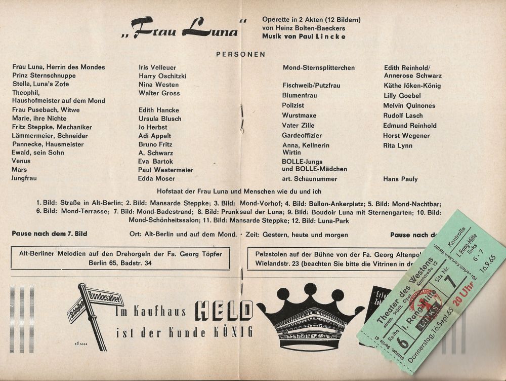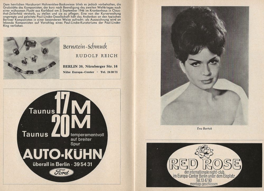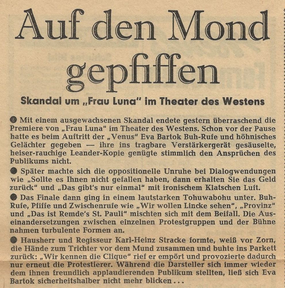 Billy hatte EVA BARTOK in der Berliner Aufführung im September 1965 von 'Frau Luna'