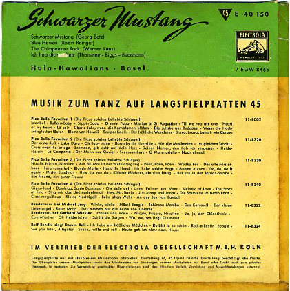 Zunächst gab es ihn 1959 in Deutschland auf der EP Electrola E 40150 'Schwarzer Mustang' als Übernahme aus der Schweiz.