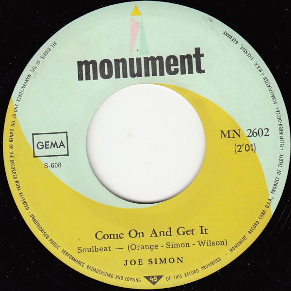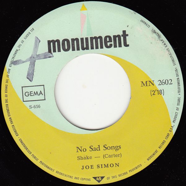 12 67….45-2602….JOE SIMON..No Sad Songs (S-656)/Come On And Get It (S-608)