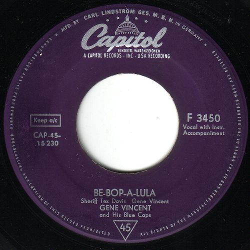 Die R&B Seite ist mit einem etwas langsameren Start offensichtlich jetzt optimal angenommen worden, darum mach ich mir noch schnell ein Weihnachtsgeschenk mit jener Musik-Richtung wo ich hörmäßig etwas mehr daheim bin. Für Puristen ist Rockabilly ein großes Problem weil es mehr als eine Meinung - aber weniger als 100 - darüber gibt, wie man diese Musik definiert. Meine drei Beispiele habe ich wahllos aus einer "Rockebilly Rarities" - Broschüre ausgewählt wobei die ersten zwei auch auf der deutschen CAPITOL (siehe Scans) erschienen sind (das ich zwei CAPITOL-Scheiben erwischt habe, ist reiner Zufall). Das dritte Beispiel war bei uns völlig unbekannt