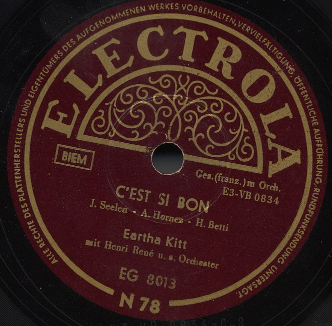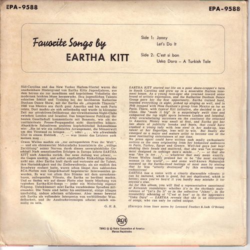 Nun einige Scans von Eartha, natürlich "Honolulu Rock And Roll" Eine deutsche RCA-EP mit einer kleinen Biographie und eine KAPP-Single wo ARIOLA 1962 zwei LP-Titel (1959: KAPP-LP 1162 "Fabulous Eartha Kitt" und 1960: KAPP-LP 1192 "Eartha Kitt Revisited) eine Single herausbrachte