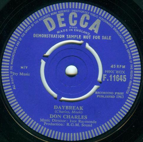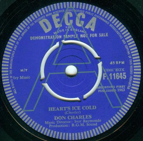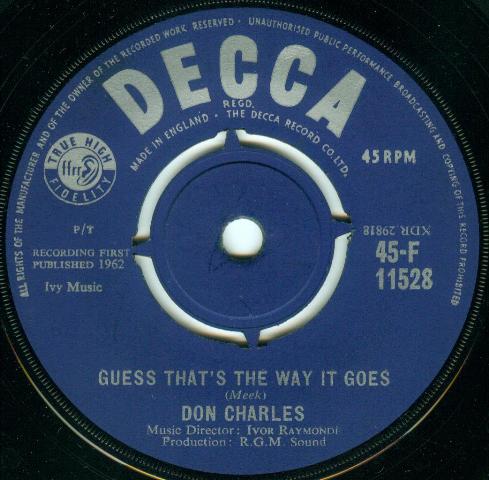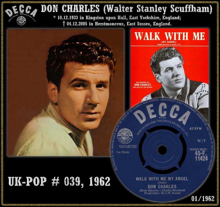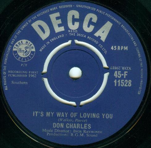 Unter dem Namen Don Bennett kam er nach London und wurde von George Martin bei Parlophone unter Vertrag genommen. Nachdem seine erste Single „Paintbox Lover“ floppte , landete Don im Alter von 27 Jahren 1961 im Studio des legendären Joe Meek in 304 Holloway Road, London. 1962/63 nahm Joe Meek insgesamt fünf Singles mit Don Charles auf. Die erste, „Walk With Me My Angel“ kam auf Platz 39 der britischen Charts im Frühjahr 1962. Sie sollte sein einziger Hit bleiben. Die ersten drei Singles, Walk With Me My Angel, The Hermit Of Misty Mountain und It`s My Way Of Loving You wurden 1962 veröffentlicht und Don wurde bei den Aufnahmen von den Tornados begleitet.