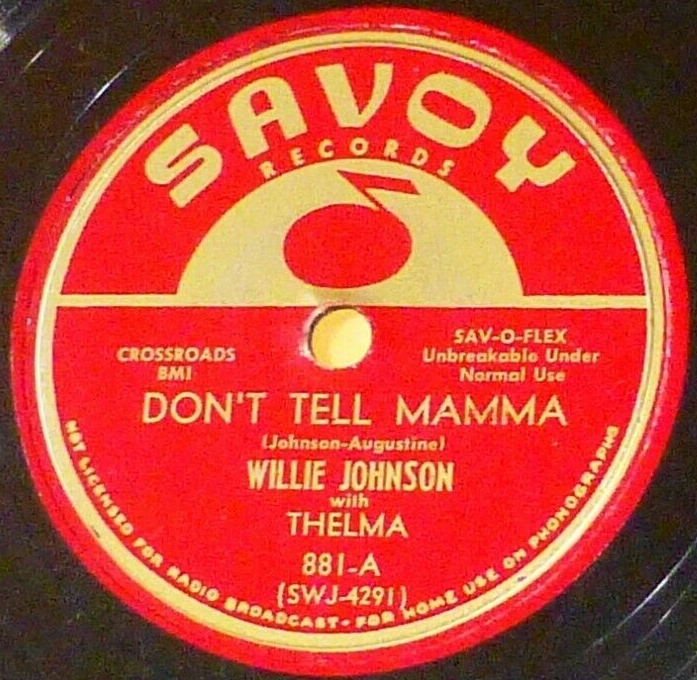 Willie Johnson:vocals and piano; "Thelma":vocals (on A); with unknown others