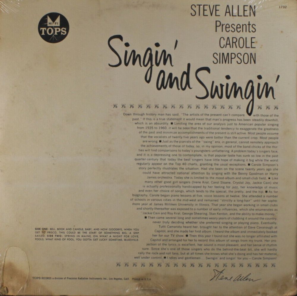 CAROLE SIMPSON war 1957 mit einer LP bei Capitol Records.
