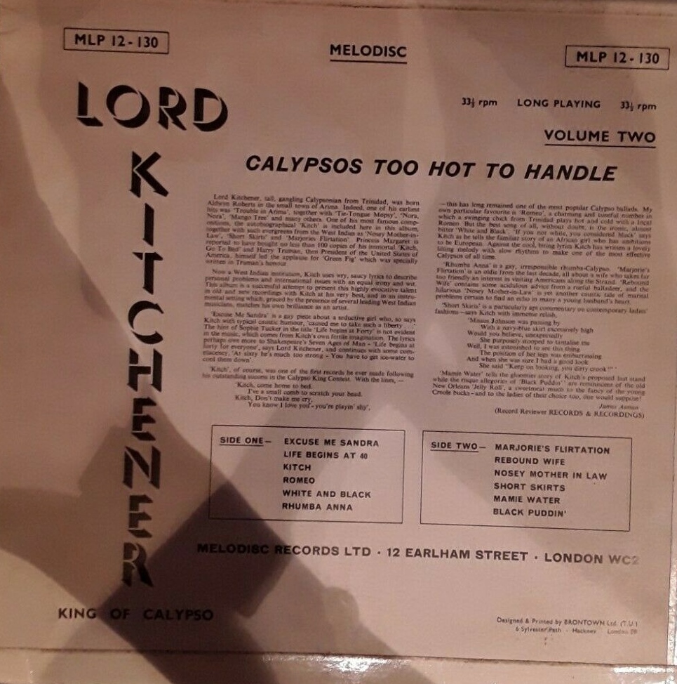 ?? 63....45/CAL 2....LORD KITCHENER VINCENT STREET SIX..Kitch (MEL 45/1160/A)/LORD KITCHENER FITZROY COLEMAN BAND..Rebound Wife (MEL 45/1160/B) (1160/--)