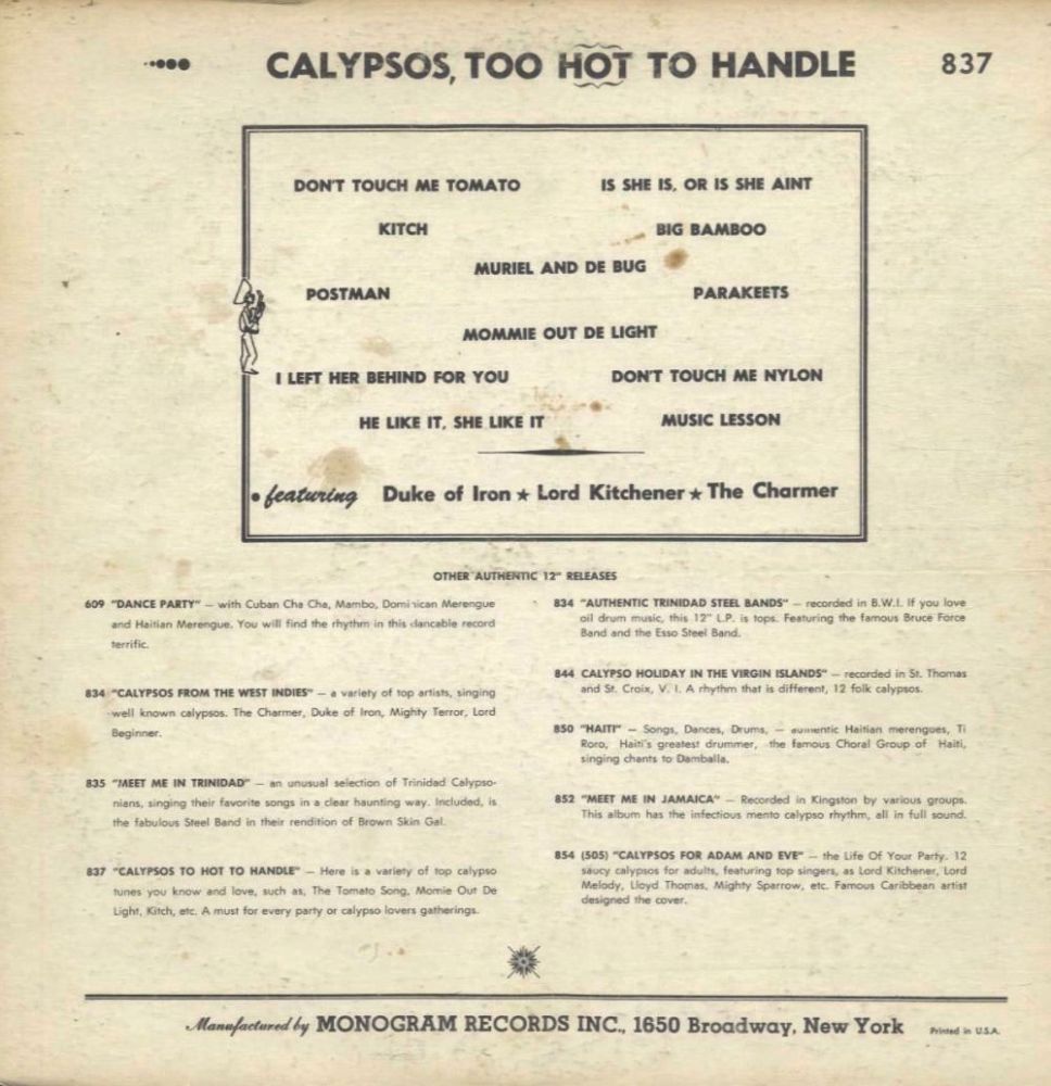 ?? 55....M-947 A....LORD KITCHENER And The Monogram Caribbean Orchestra..Big Toe/ B….MONOGRAM CARIBBEAN ORCHESTRA..Calypso Cha-Cha For Spooks