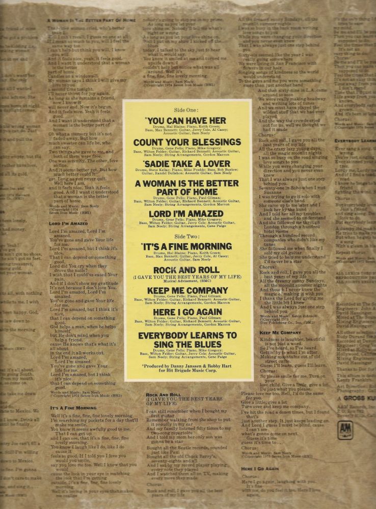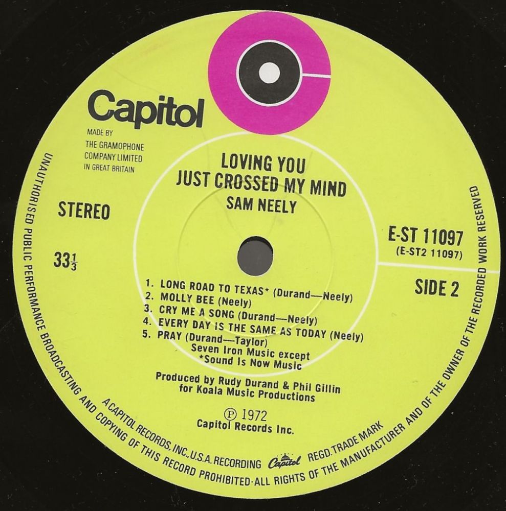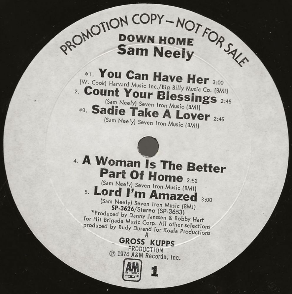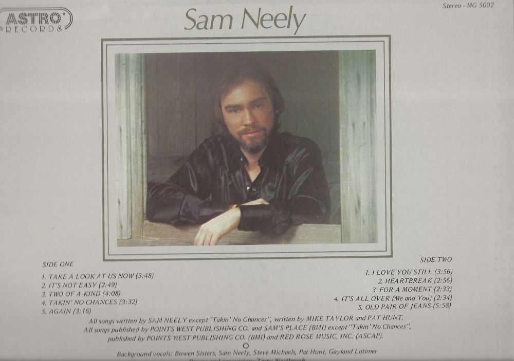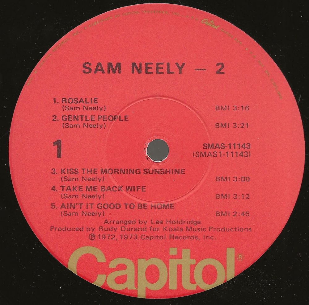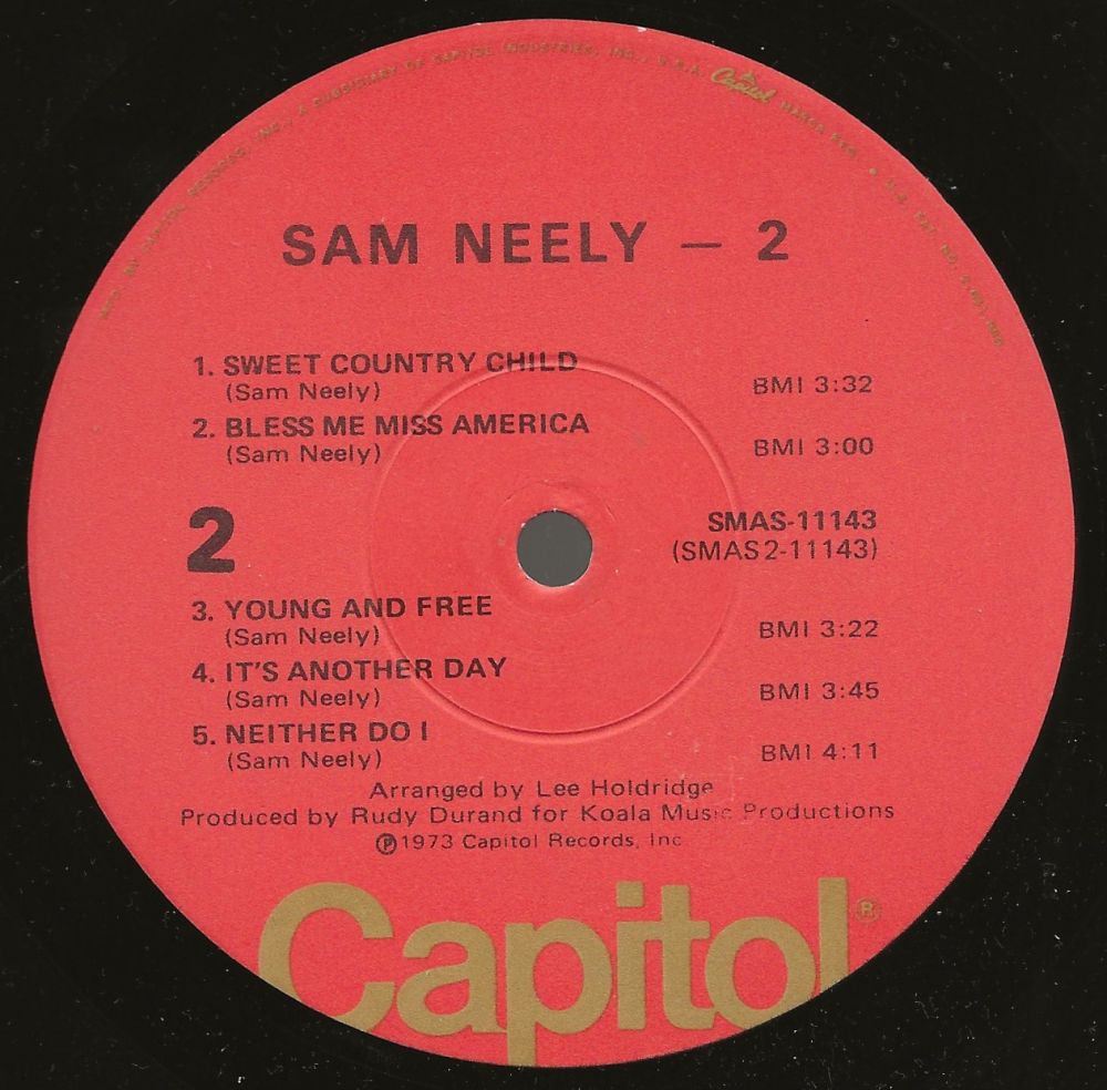 Sam Neely (22. August 1948 - 19. Juli 2006) war ein US-amerikanischer Country- und Folkmusiker, Singer-Songwriter, Aufnahmekünstler und Performer. Sam Neely war ein weiterer talentierter Performer mit allen Voraussetzungen für einen Star, der es aber nie wurde. Er wurde geboren in Cuero, Texas, begann im Alter von zehn Jahren Gitarre zu spielen und gab innerhalb eines Jahres sein professionelles Debüt. Er zog mit seiner Familie nach Corpus Christi und begann im Alter von 15 Jahren, in lokalen Bands zu spielen. 1966, während er mit einer Rockband aus der Gegend namens Buckle spielte, betrat Neely sein erstes Aufnahmestudio. 1968 trat er in der Merv-Griffin-Show auf, als er einen Filmproduzenten traf, der nach einem Komponisten suchte, um seinen neuesten Film Tilt zu vertonen. Der Film kam erst 1978 heraus, aber er enthielt Neelys Song „Long Road to Texas“. Sam hat zahlreiche Hits geschrieben und aufgeführt, darunter; „Rosalie“, „You Can Have Her“, „I Fought The Law“, „Loving you just crossed my mind“, „Long road to Texas“, „Jesse California“, „O’Molly B“, „Get down on your knee‘s and pray“", und viele mehr. Er hat auch Titelsongs für zwei Filme geschrieben, „Bonnies Kids“ und „Tilt“ mit Brooke Shields in der Hauptrolle. Neben den Filmen hatte Sam die Ehre, den Schlusssong der letzten Folge der Fernsehserie M*A*S*H „Goodbye, Farewell, and Amen“ zu singen. Das Lied trug den Titel "The Party's Over (Farewell To M*A*S*H)". 1974 feierte er mit „You Can Have Her“ Erfolg in den Pop- und Country-Charts, der in der Mitte beider Listen seinen Höhepunkt erreichte. Neely hatte in den 1970er Jahren noch ein paar kleinere Hits. 1978 kehrte er nach Corpus Christi zurück, wo er wurde der House-Act in einem Club in der Gegend, dem Electric Eel. Schließlich eröffnete Neely seinen eigenen Nachtclub, Neely’s, wo er von Roger Ramsey von MCA entdeckt wurde. Er unterschrieb 1983 bei dem Label und tauchte mit Songs wie „You Can Never Go Back“ noch dreimal in den Charts auf. Seine Songs haben es 13 Mal oder besser in die Top 40 des Billboard Magazins als Aufnahmekünstler/Songschreiber mit weltweiten Plattenverkäufen geschafft. Er trat in „American Bandstand“, „Midnight Special“, „Nashville Now“ und anderen Shows auf und teilte sich die Bühne mit Juice Newton und The Guess Who. Neely brach zusammen und starb eines natürlichen Todes, als er am Abend in seinem Garten auf Padre Island seinen Rasen mähte. am 19. Juli 2006. Er war 58 Jahre alt.