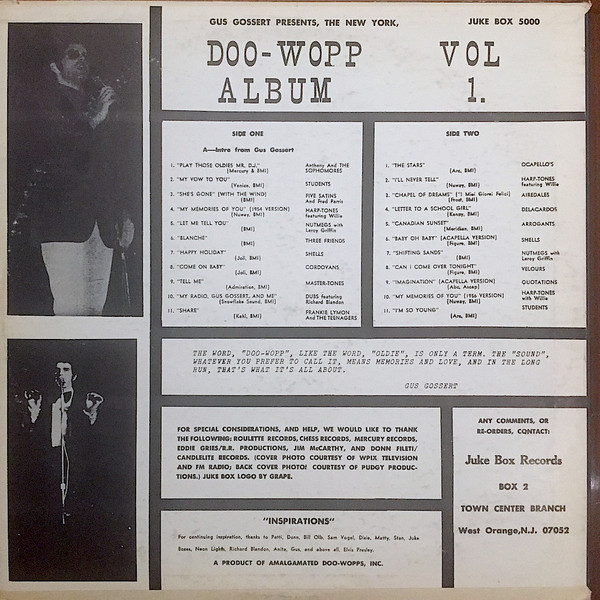Die meisten dieser Platten waren ein Reinfall, das heißt, von jeder Platte wurde nur eine relativ geringe Zahl verkauft. 1960 dann, als die ersten Leute merkten, dass Rock’n’Roll-Platten 1. gut und 2. immer schwerer aufzutreiben waren, wurden gewisse Leute (besonders in New York) so große Anhänger der Gesangsgruppen der fünfziger Jahre, dass sie jede Platte dieser Musikrichtung besitzen wollten, egal, wie die musikalische Qualität war. Die seltensten Stücke, sprich solche, die keiner kaufen wollte, als sie neu rausgekommen waren, trieben bald die Preise in die Höhe und führten zu einer Subkultur, in der die alten Platten vor allem nach dem Preis und dann erst nach der musikalischen Qualität bewertet wurden.