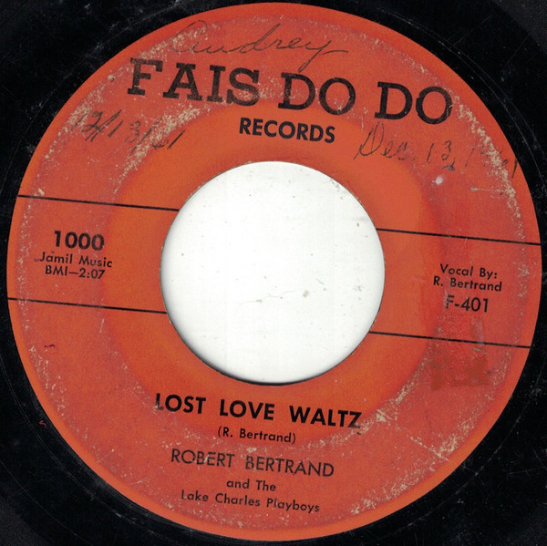 00 59….1000…. ROBERT BERTRAND And The Lake Charles Playboys Vocal by R. Bertrand..Lost Love Waltz/Drunkard's Two-Step