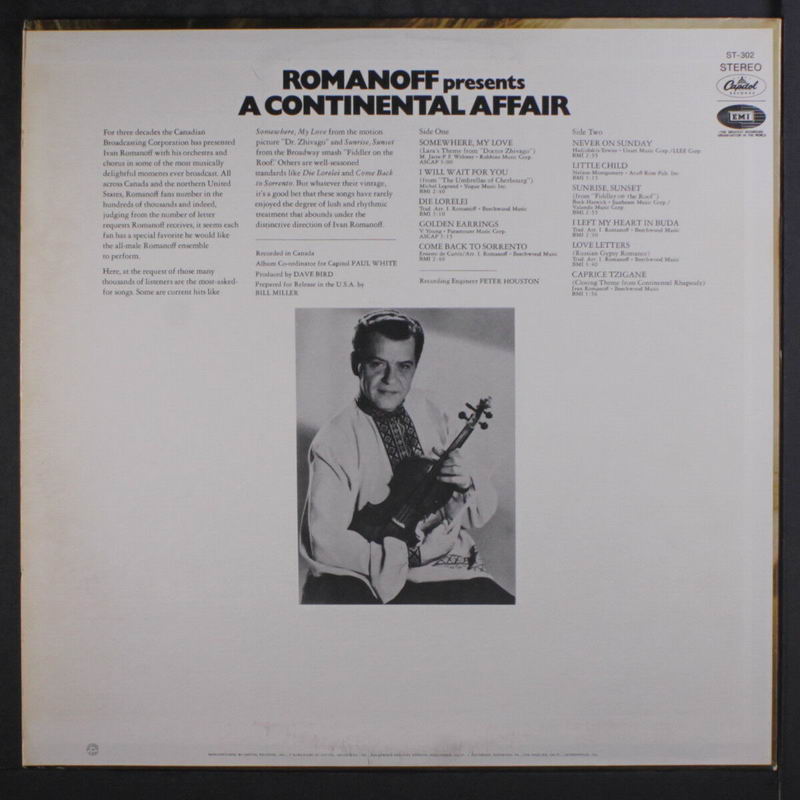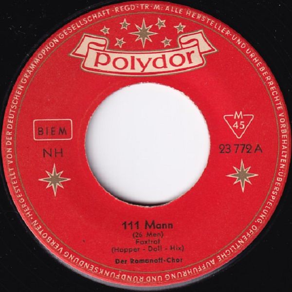 Ivan Romanoff, geboren am 8. März 1914 in Toronto, kanadische Provinz Ontario, als Ivan Pezhuk und verstorben am 14. März 1997 ebenda, war ein kanadischer Dirigent, Geriger, Arrangeur und Komponist ukrainischer Abstammung und kam mit seinen Projekten viel in der Welt herum. Im Jahre 1958 dürfte er in unserem deutschen Sprachraum gewesen sein, was zu zwei Singles des deutschsprachigen Romanoff-Chores führte. Dieser Männerchor passt natürlich nicht besonders gut in unser Forum. Die zweite Single dieses Romanoff-Chores könnte aber für die „Cover-Sammler“ von Interesse sein.