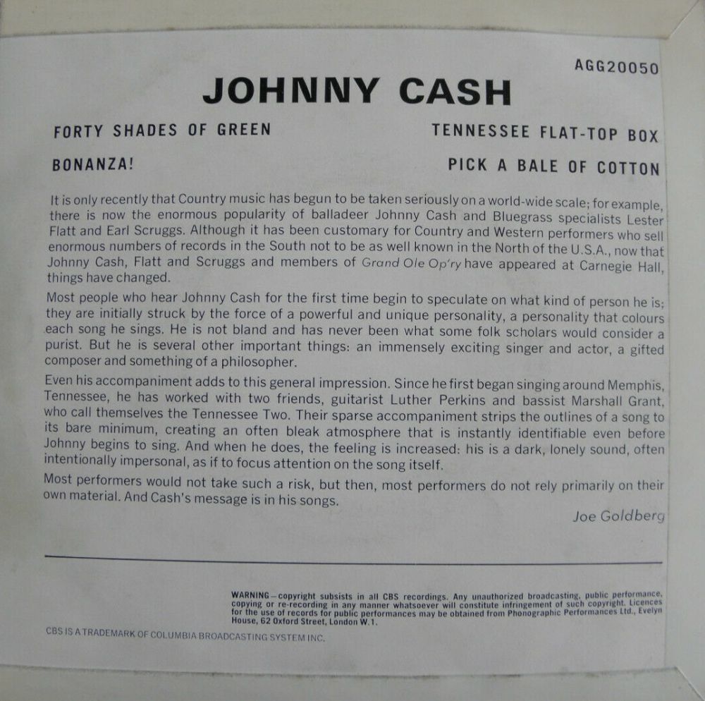 JOHNNY CASH auf CBS CW 281.215 (Deutschland)