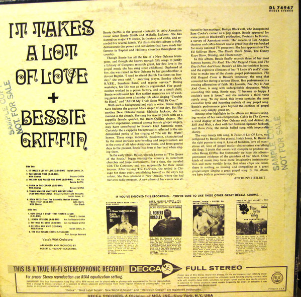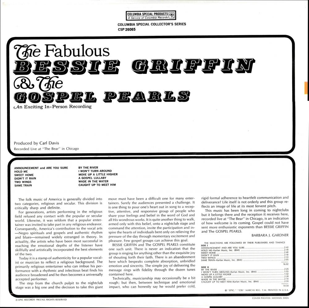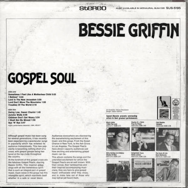 Griffin nahm ein Soloalbum für Savoy auf, ein Album mit den Gospel Pearls mit dem Titel “Gospel Soul“ auf Sunset und veröffentlichte eine Live-Aufnahme eines Konzerts auf dem Nashboro-Label.