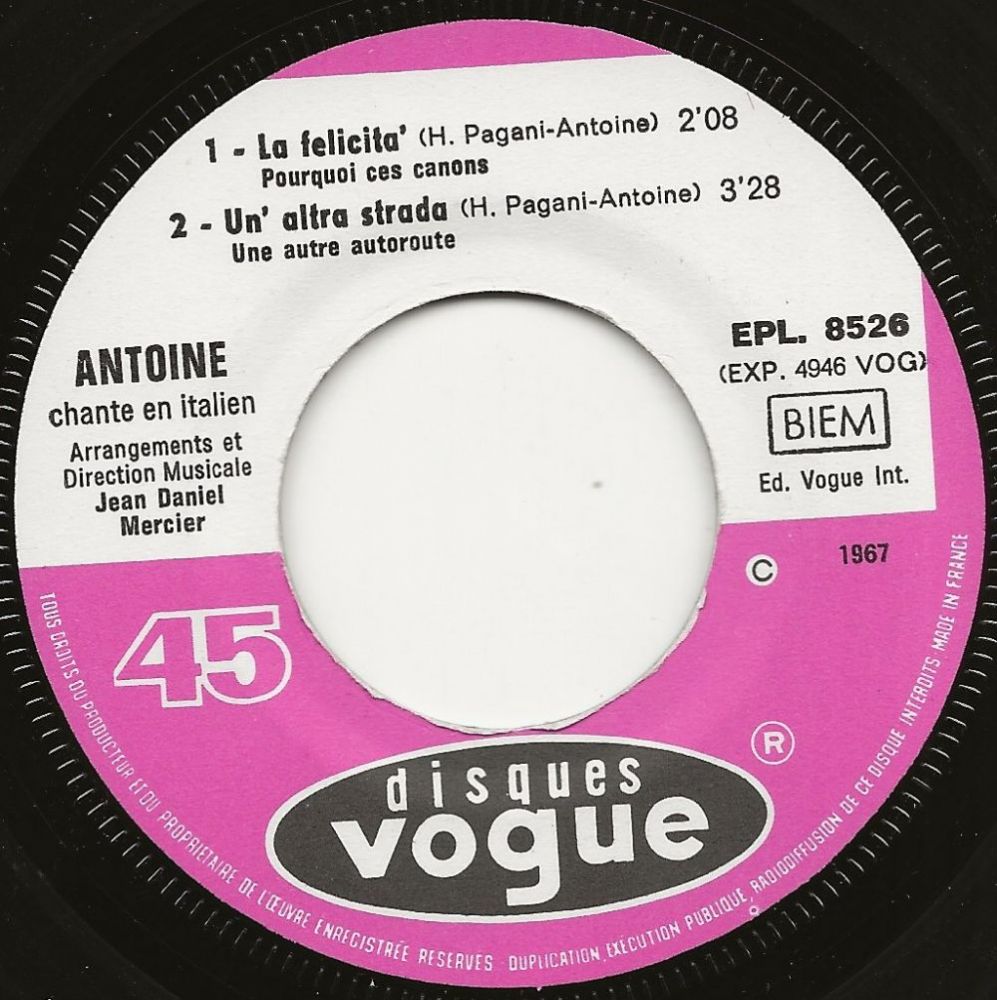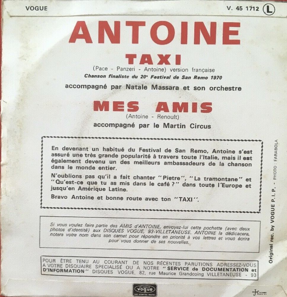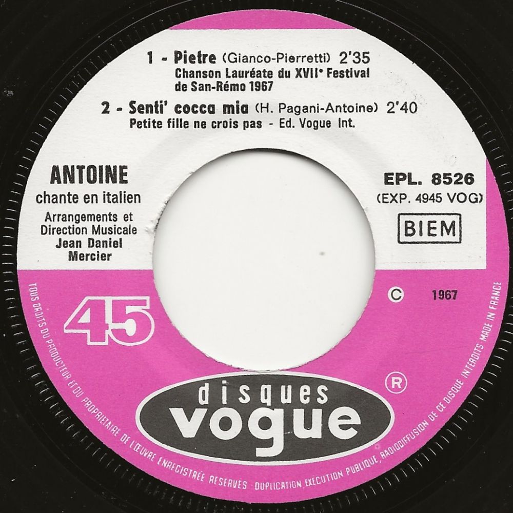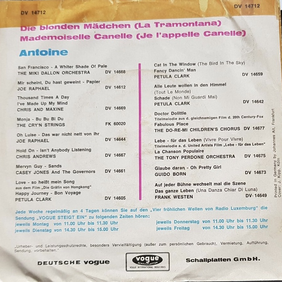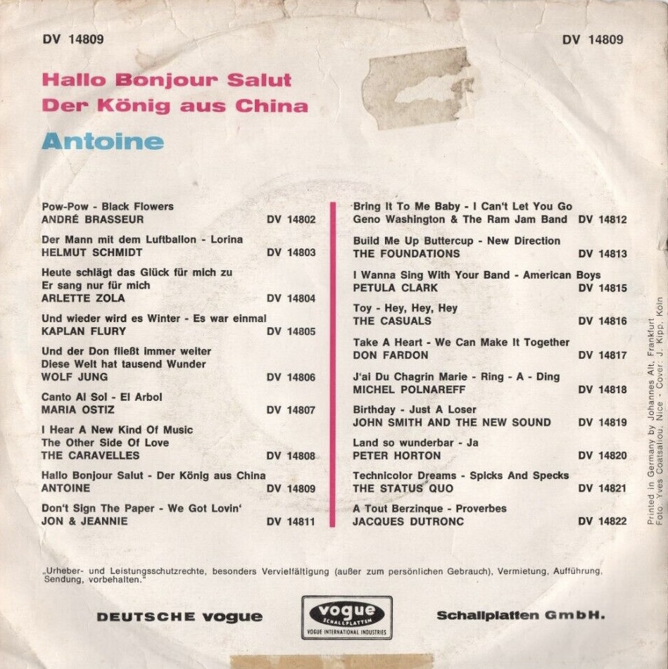 ANTOINE war 1968 mit zwei deutschsprachigen Songs