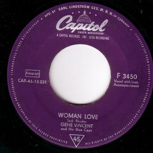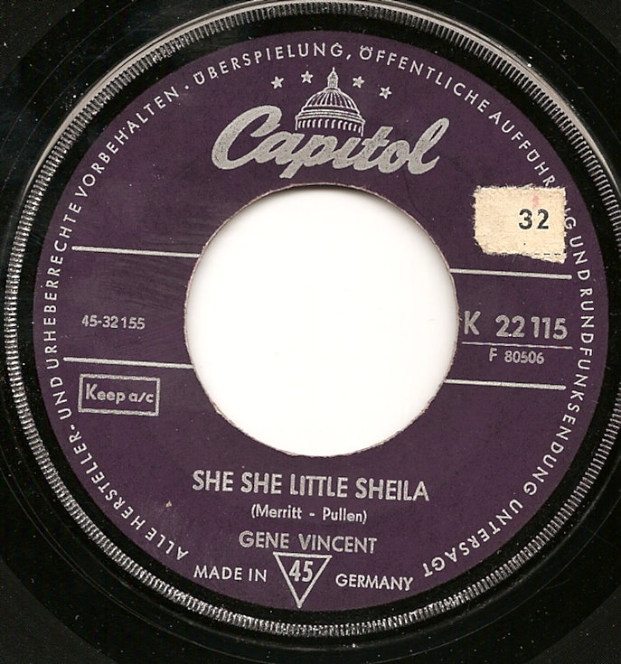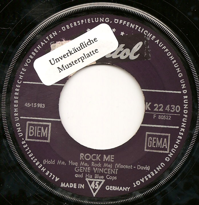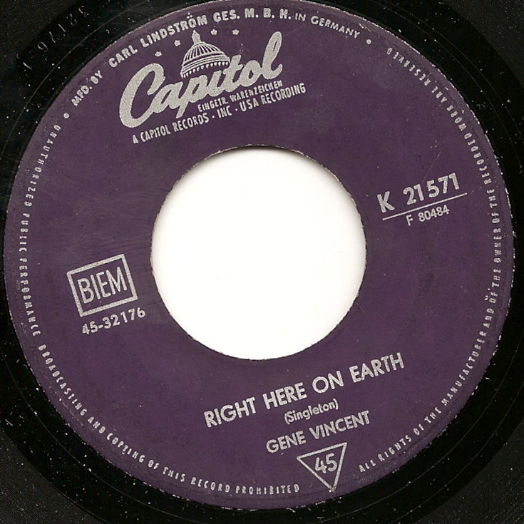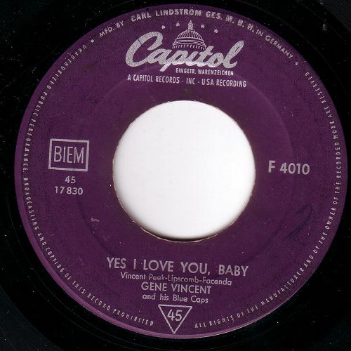 Nach der italienischen EP erstmal nur deutsche Pressungen von Vincent Eugene Craddock. Wenn einer die CF 3450 (TELEFUNKEN), würde sie gut hierher passen. Nach meinem Wissensstand war das die erste und einzige Single die von Vincent noch bei TELDEC veröffentlicht wurde.