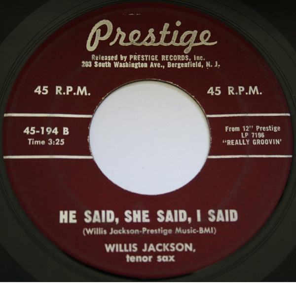 07 61....45-194 A....WILLIS JACKSON tenor sax..Careless Love/ B....He Said, She Said, I Said