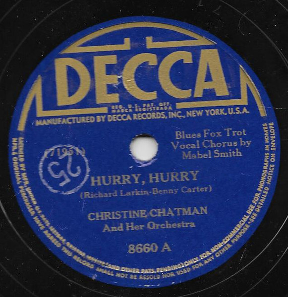 00 44….8660…. CHRISTINE CHATMAN And Her Orchestra..Hurry, Hurry/Naptown Boogie