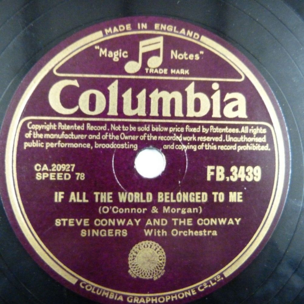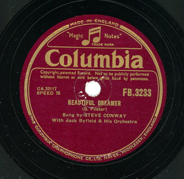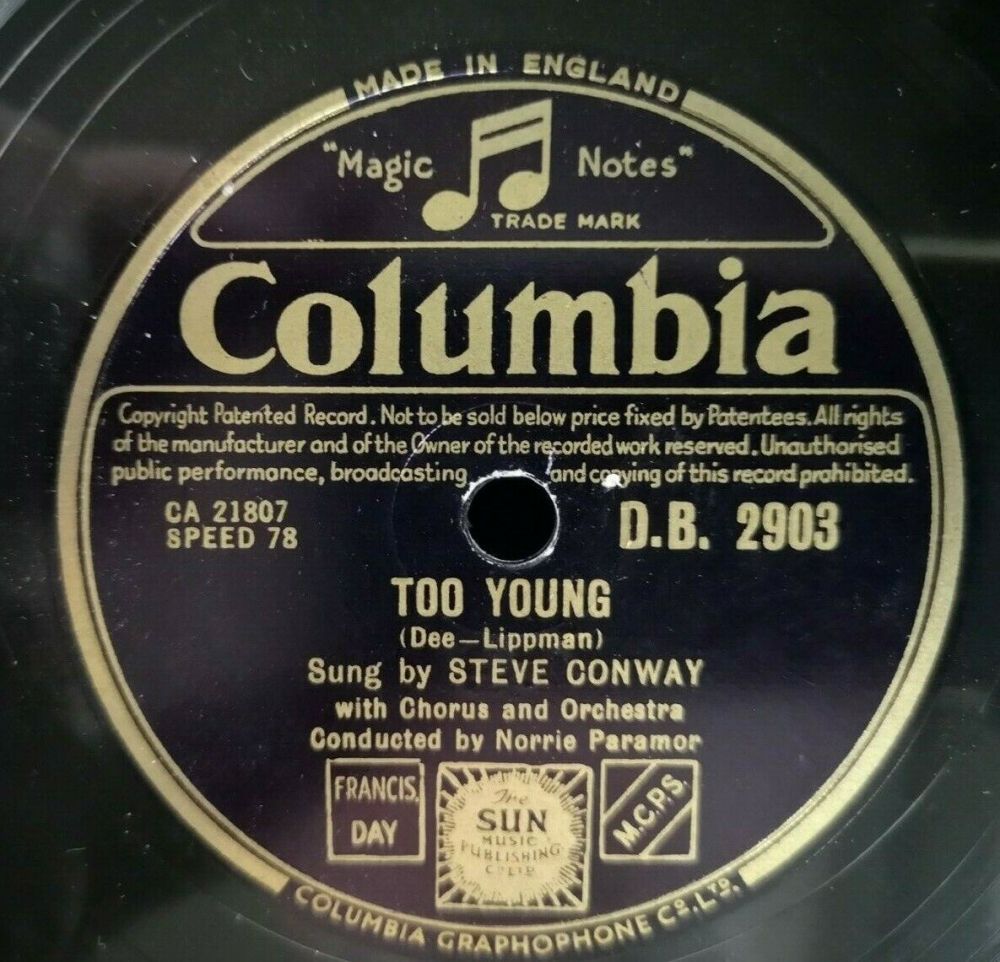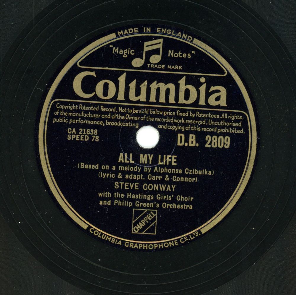 1945 war auch das Jahr, in dem Conway sein Plattendebüt für Columbia Records von EMI gab, bei dem er einen Vertrag unterschrieb. In den Abbey Road Studios sang er im Alter von 24 Jahren “The Gypsy“ und “I Could Never Tell“, die im November desselben Jahres auf einer Single veröffentlicht wurden.