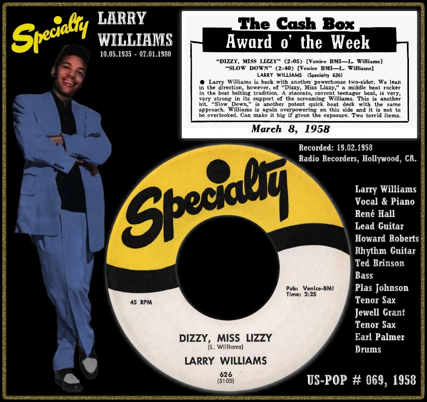 02 Larry Williams Dizzy Miss Lizzy 2.16 Specialty 626 1958