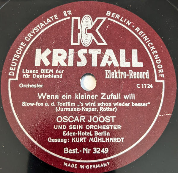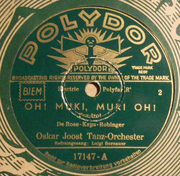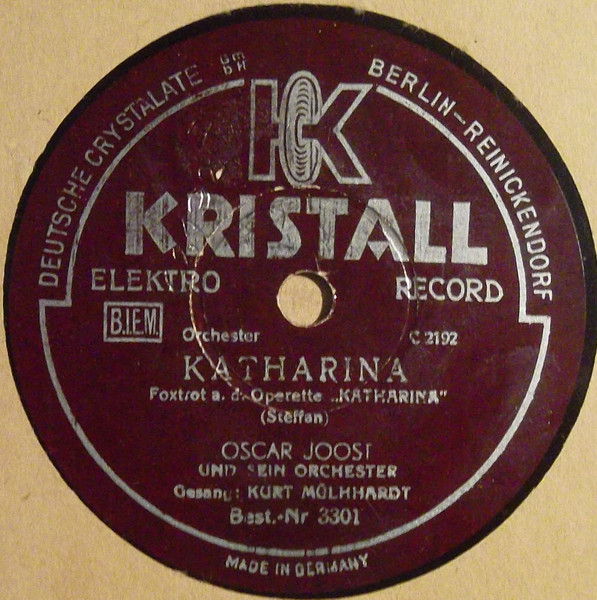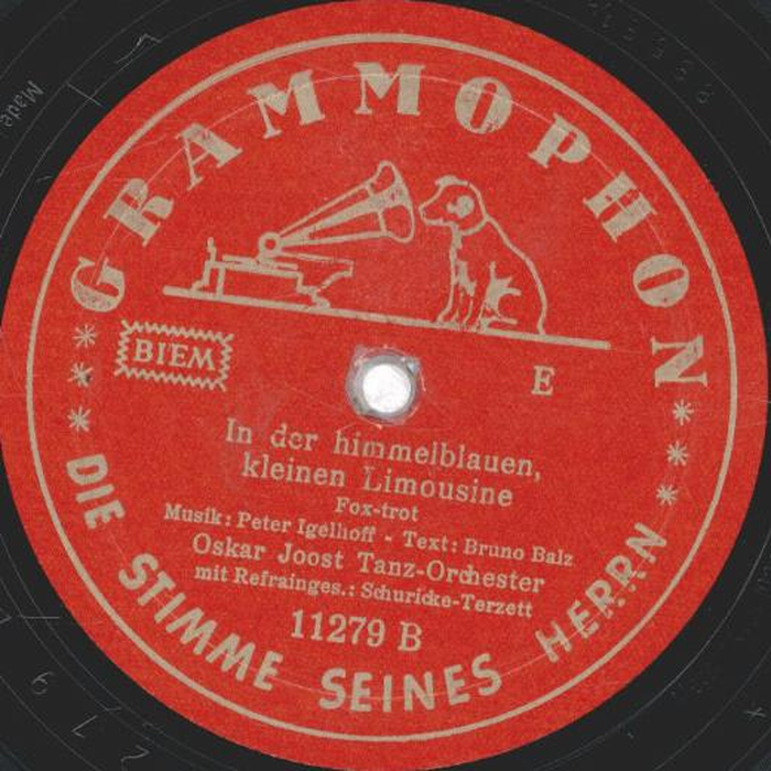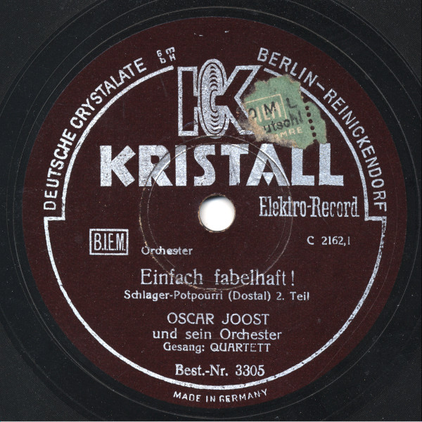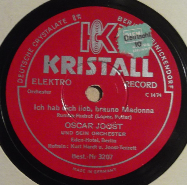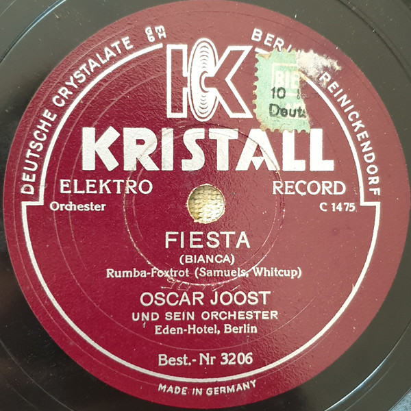 OSCAR JOOST TANZ-ORCHESTER: OSCAR JOOST-v, ld, KURT HOHENBERGER-tp, CARL HOHENBERGER-tp, PAUL THIEL-tp, RICHARD DREWS-tb, WALTER BIEROTTE-tb, ERICH KLUDAS-cl, as, RUDY JUCKELANDT-cl, ts, ALI JOOST-as, cl, WILLI BASSE-bars, s, FRANZ MÜCK-p, arr, WALTER PÖRSCHMANN-bandoneon, FRED DÖMKE-g, ALFRED WOLFRAM-b, ERICH SCHULZ-d, KURT ENGEL-xyl, Grammophon