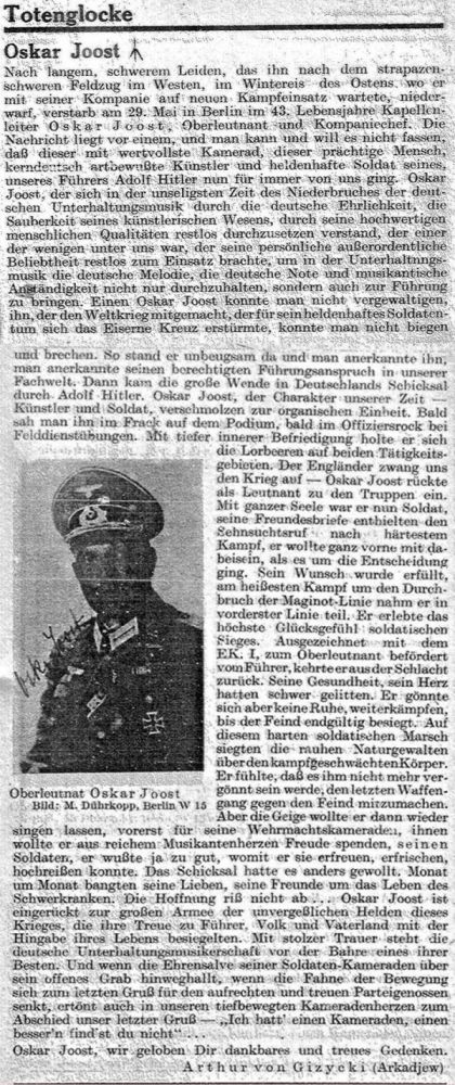 JOOST, OSKAR * 09.06.1898 in Weissenburg/Elsass, + 29.05.1941 in Berlin, Musiker-v u. ts,