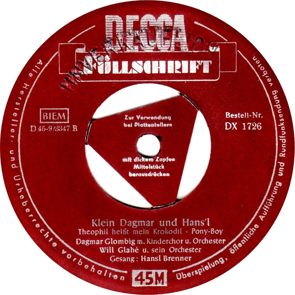 1950 war Dagmar Glombig ein Kinderstar (Film "Gabriela") und Schallplatte (Decca).