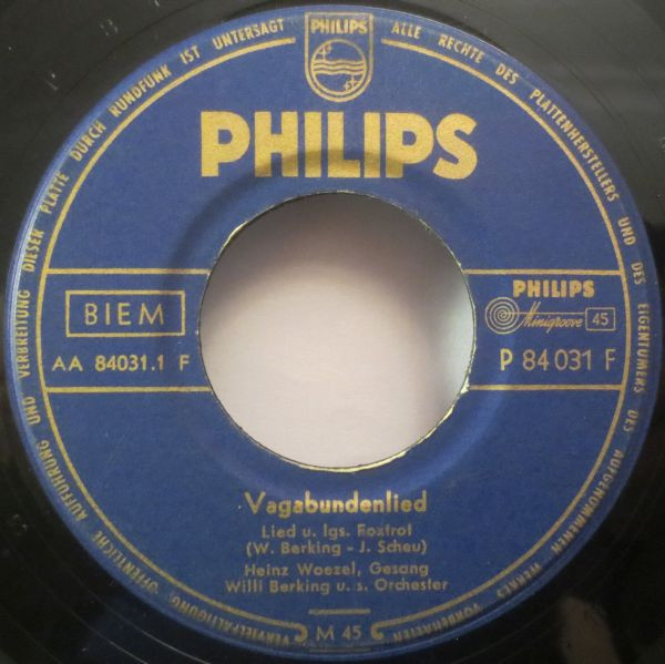 P 44365 H "Vagabundenlied"/"Ich Habe Heut’ Nacht Eine Große Dummheit Gemacht"-1953 & WILLY BERKING und sein Orchester,