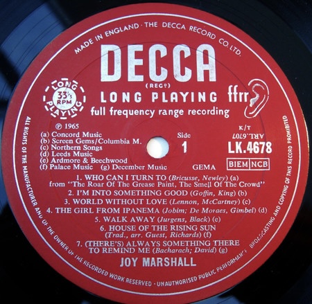 1965/66 war sie auf Decca mit einem Album und Singles.